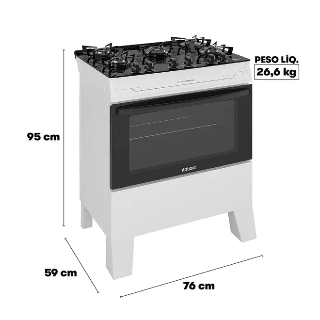 • Fogão 5 Bocas a Gás Itatiaia Electra Glass Plus Mesa de Vidro Acendimento Automático Branco Bivolt