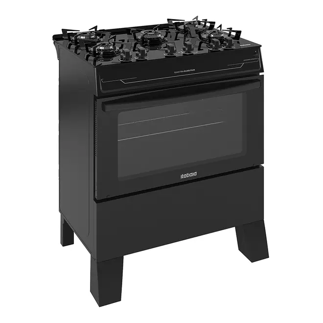Fogão 5 Bocas a Gás Itatiaia Electra Glass Plus Mesa de Vidro Acendimento Automático Preto Fosco Bivolt