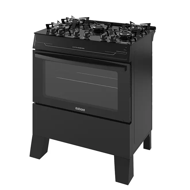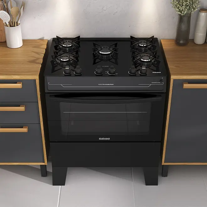 • Fogão 5 Bocas a Gás Itatiaia Electra Glass Plus Mesa de Vidro Acendimento Automático Preto Fosco Bivolt