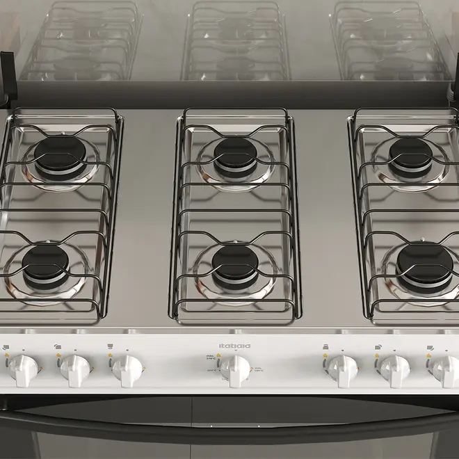 • Fogão 6 Bocas à Gás Itatiaia Star New Acendimento Automático Limpa Fácil Branco Bivolt