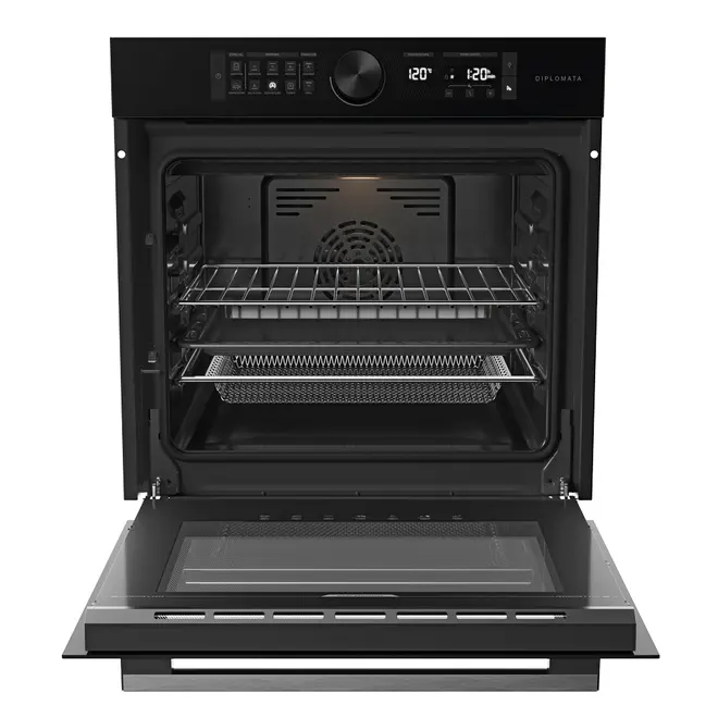 • Forno Elétrico de Embutir 80 Litros Dako Diplomata com Função Air Fryer Limpa Fácil Preto 220V