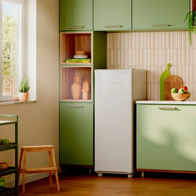 O Freezer Vertical Consul CVU18 possui capacidade para 121L e cabe perfeitamente na sua cozinha, com lugar certo e compartimento de sobra para tudo o que você quiser conservar por mais tempo. Conta com compartimento para gelo e picolé, prateleira para pratos prontos e gavetão de frutos do mar.