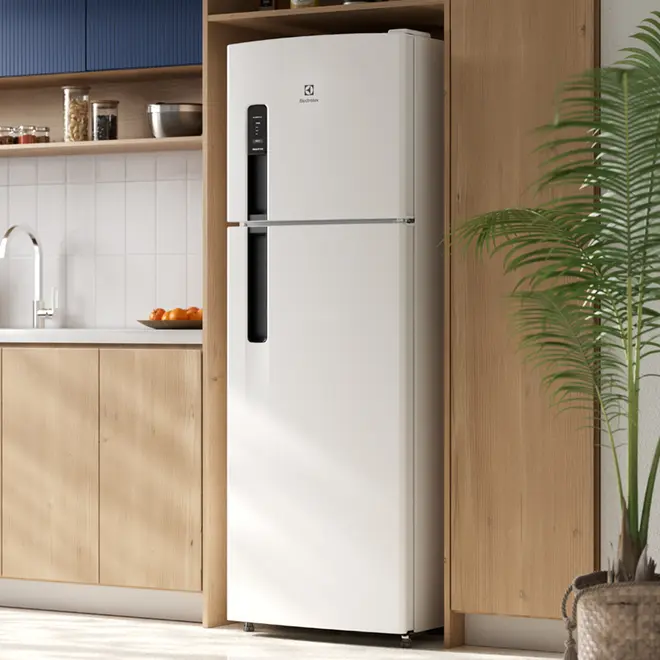 Design Robusto: Refrigerador durável e prático para atender sua rotina, armazenando alimentos de acordo com suas necessidades.