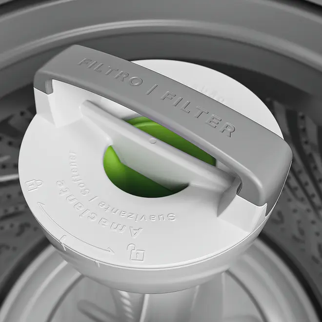 Ciclo Rápido e Reuso de Água: Ganhe tempo com lavagens de apenas 18 min e consciência tranquila com o descarte de água. O sistema permite recuperar até 70L para a limpeza da casa, unindo praticidade e economia real.