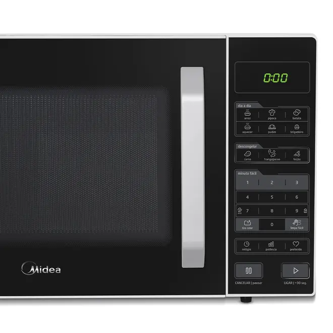 O Micro-ondas Midea vai se tornar seu melhor amigo na cozinha. Retirar xícaras e canecas vai ser muito mais fácil: possui Prato Inteligente, que retorna a alça dos recipientes para a posição inicial. O Micro-ondas Midea é super completo! Com Função Preferido, é possível deixar salvo o programa e tempo de suas receitas prediletas. Além de todas essas facilidades, conta com Minuto Fácil para acesso rápido de 1, 2 ou 3 minutos, Função Tira Odor, Limpa Fácil e Função Eco para mais economia de energia com o visor desligado.